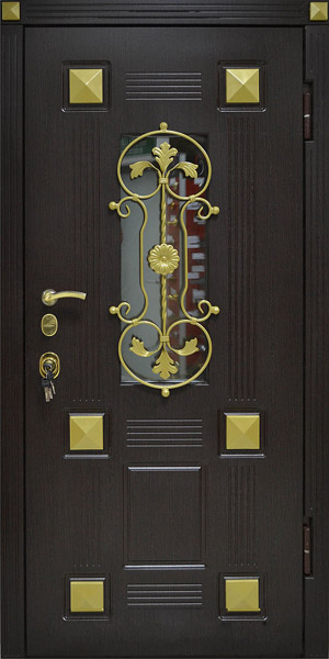 Красивый внешний вид немаловажное, но не самое главное преимущество металлических дверей с элементами ковки. Такие двери еще и очень надежны. Они изготавливаются из холоднокатаной стали толщиной 1,4-2 мм, отделываются массивом, корабельной фанерой, натуральным шпоном или МДФ-панелями, покрытыми виноритом. Установив на нее замки 3 или 4 класса взломостойкости, вы получите дверь, вскрыть которую с помощью грубой силы практически невозможно.